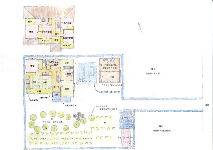 「仙台市若林区荒浜では、大変お世話になりました。その時に描いて頂きました図面は、時々見て、懐かしく思っております。記憶が日々薄れる中で、私の唯一の想い出となっており、多分私が成仏した折、子供や孫達の記憶の中に残るものと確信しています。