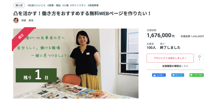 第一目標額を229,500円超え、1,676,000円達成いたしました。