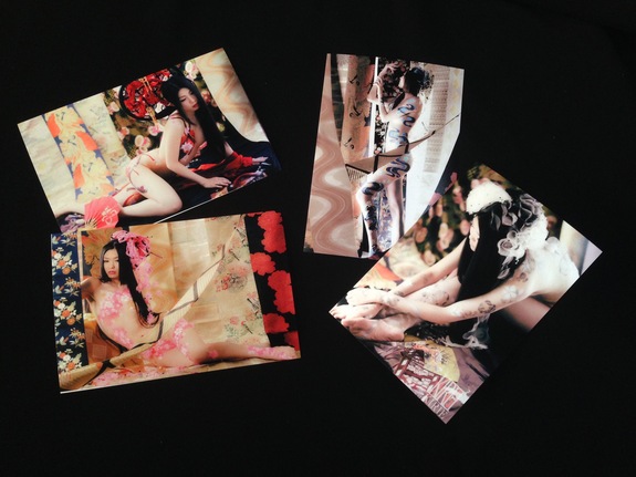「四季」をテーマにした写真作品のポストカード。春・夏・秋・冬をテーマに女性の身体に描いた作品。