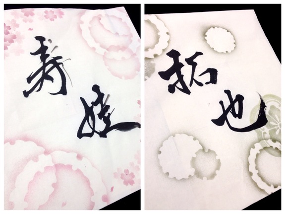 子供の名前など、お好きな名前(3文字まで)を美帆が書き、その上に美呼がデザインをします。完全オーダーメイド。デザインは2パターンから選べます。基本、男性はグリーン調、女性はピンク調になります。