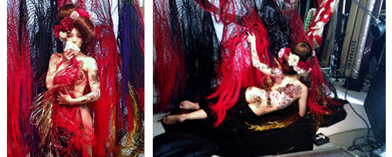 日本女性の身体美の美しさを最大限に生かし、日本文化に古くから馴染みのある水引を新しい表現方法でみせるKIRIEの作品。