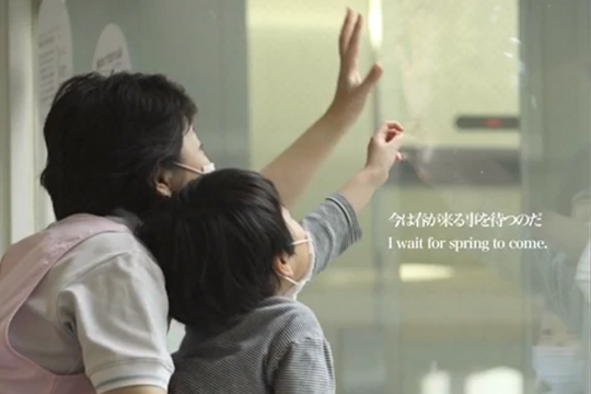 2010年に「霧はれて光きたる春」を大阪市立大学医学部付属病院で行って以来、大阪赤十字病院での取り組みを経て次回は大阪府下で3回目の取り組みになりますが、毎回人々が空を見上げている風景には僕自身が胸を打たれます。演出もタイミングや仕掛けも全て僕自身が取り組んでいるにも関わらず、始まって人々が窓辺にやって来て一緒に眺めているのを見ると、僕はこの風景に対して何も特権的な立場ではないのだといつも思います。僕自身もこれを眺めている多くの患者さんやお医者さんと何も変わらず、観客としてこの風景の前にたたずむ一人の人になっていることを感じます。