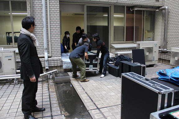 やってみなければ見えて来ない問題点も出てきます。それをスタッフのみなさんや病院側の方々との協力によってひとつひとつクリアしていきます。ここで生まれる連携が、このインスタレーションを行うひとつの意味でもあります。