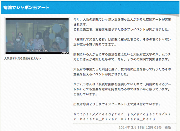 当日の模様は『霧はれて光きたる春』の話題と共に、翌日朝の関西テレビのニュースでも放送されました。