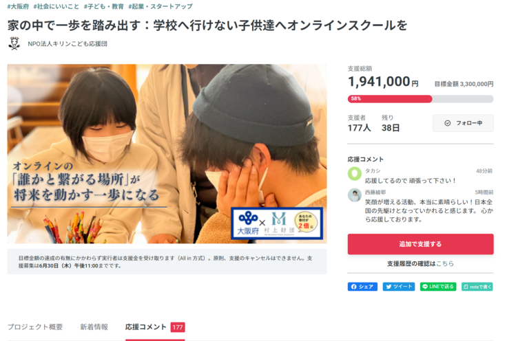 私たちが進めるクラウドファンディングに多くの皆様から