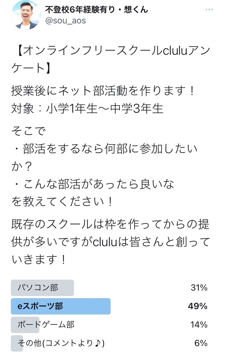 皆様お世話になっております!オンラインフリースクールclulu校長の篠田想です!