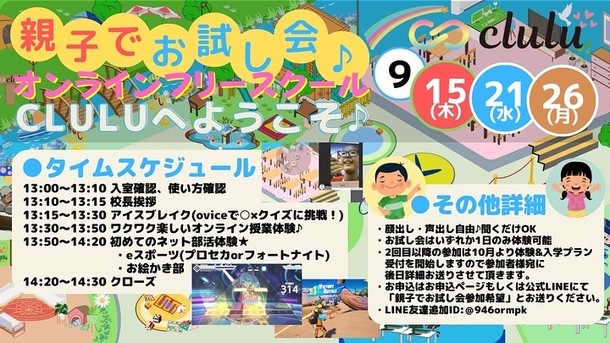 【第3回‼親子でお試し会♪オンラインフリースクールcluluへようこそ♪】