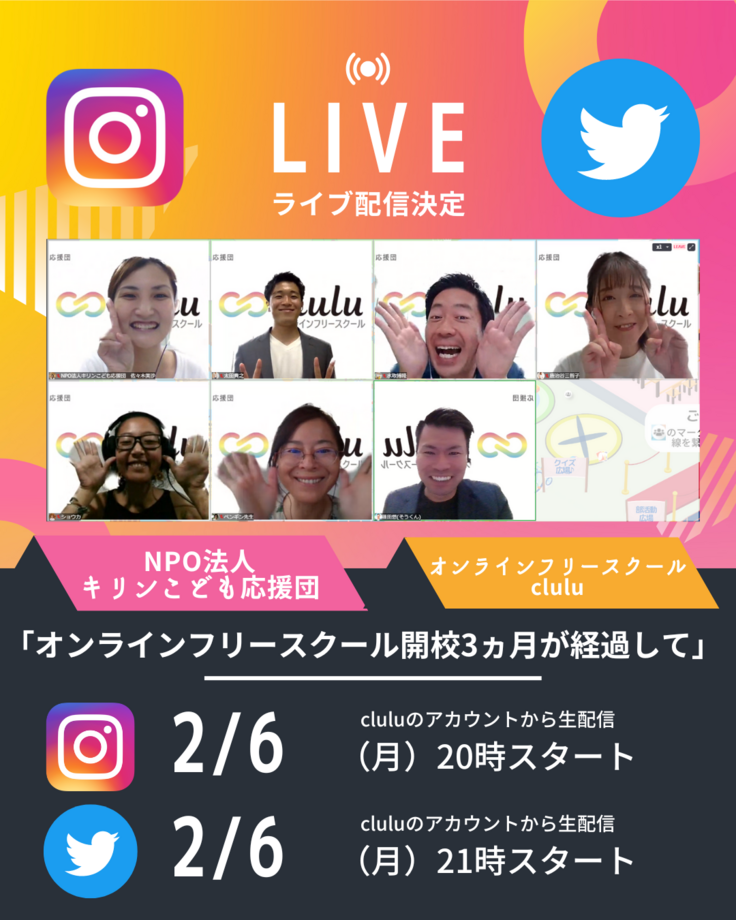 また、2月6日にインスタグラムとツイッターにて、開校より3か月が経過してのクルルの様子や子供達がどう変わって行っているかなどについてライブ配信をしたいと思いますので是非聞きにきてもらえたら嬉しいです♪