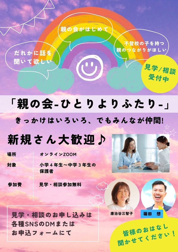 小学4年生~中学3年生の不登校の子を持つ保護者向けの親の会を開催させて頂きます。