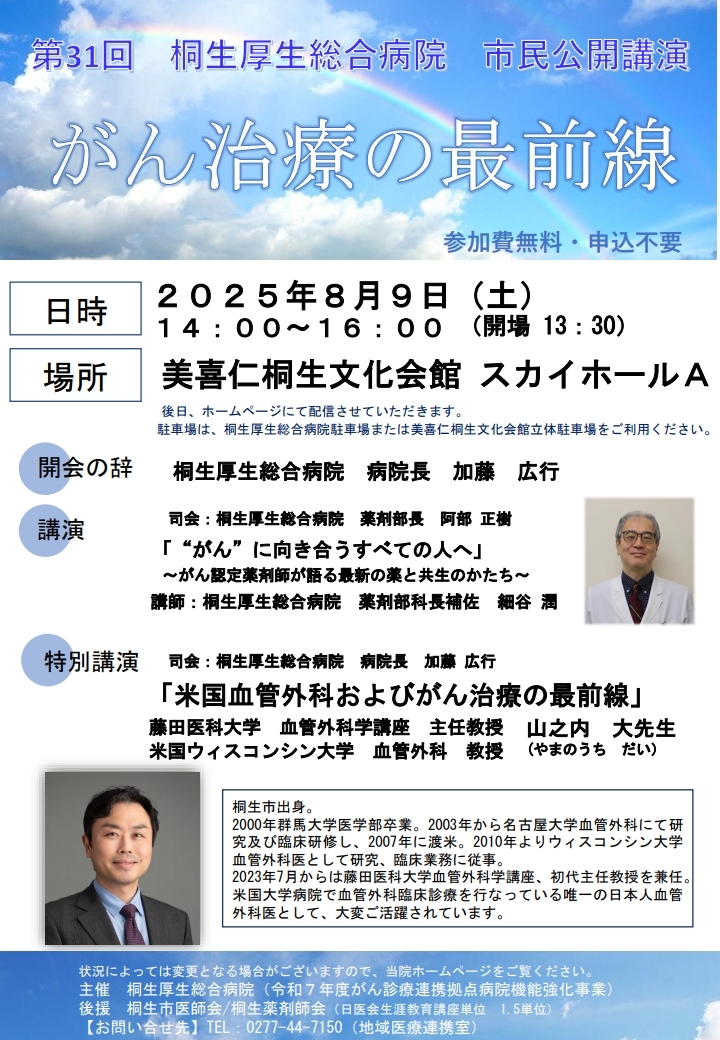 8月9日(土)午後2時から『第31回桐生厚生総合病院市民公開