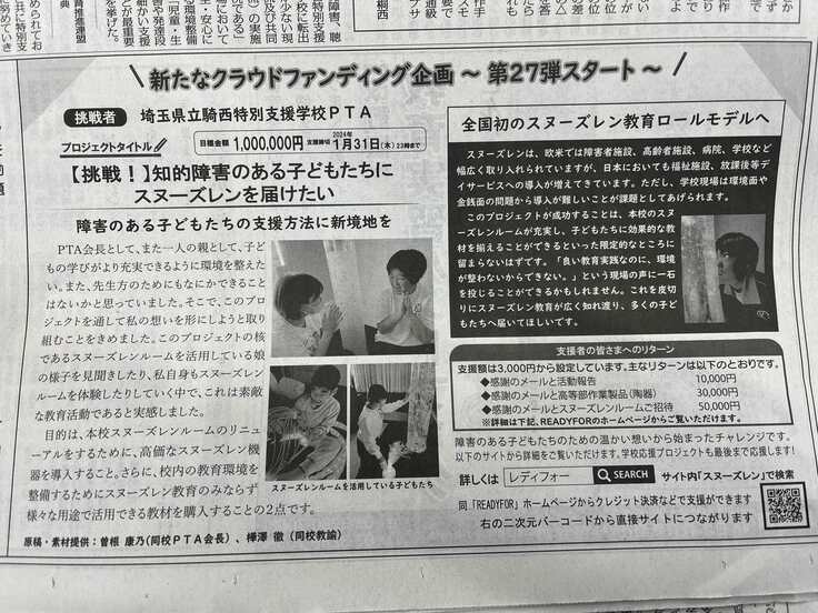 12月18日付けの日本教育新聞にクラウドファンディングの記事を載せていただきました。