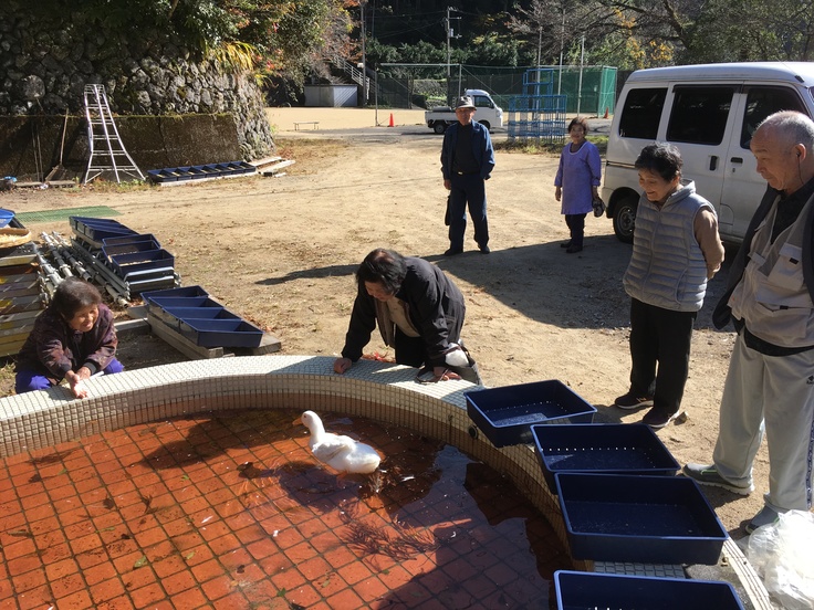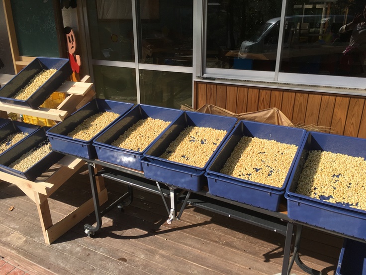 ゆずを各家庭の「手搾り機」で搾ると、大量の種がでます。今年はもったいない種を乾燥→搾油 してみようと、木沢の回覧板に種募集!のチラシを入れました。多くの種が集まってきており、今日は朝から洗って干す作業を、ヨンロッパ で。お天気もよかったので、散歩がてらヨンロッパ が気になっている地元のおじいちゃんおばあちゃんが立ち寄られました。食堂の完成を心待ちにしている方々です。