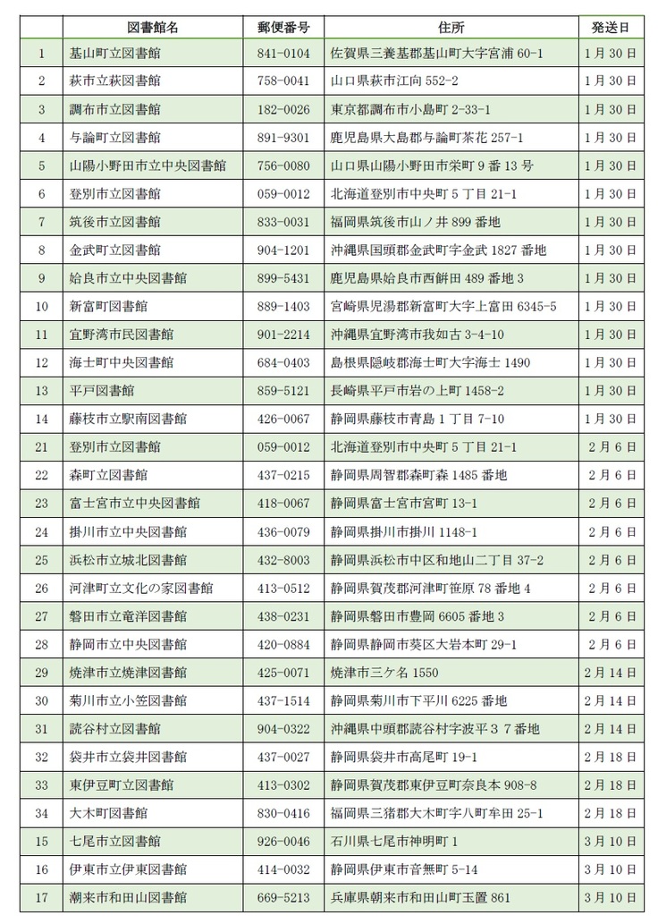♥皆さんの支援で(4月12日現在)全国の図書館に寄贈したのは以下の通りです。
