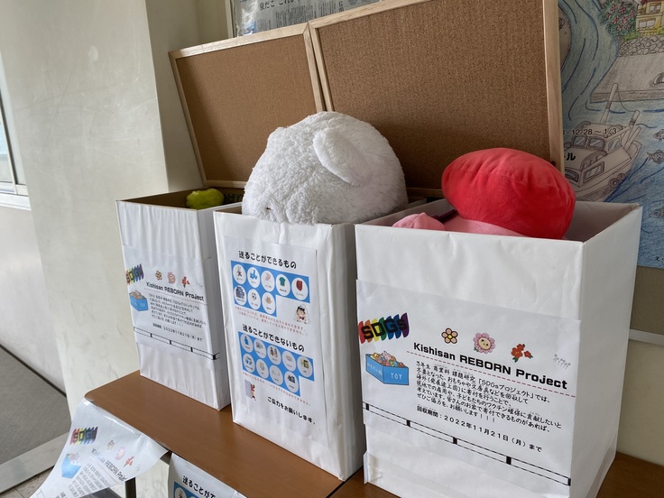 すぐに満杯となってしまうような状況もあり、その際には、別で用意した45リットルの袋に移し替えていただきました。中には大きな袋にぬいぐるみをたくさん入れて持って来てくださる方もいらっしゃいました。授業や休み時間などの時間を利用して、回収物の確認も随時行ってきました。