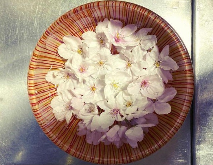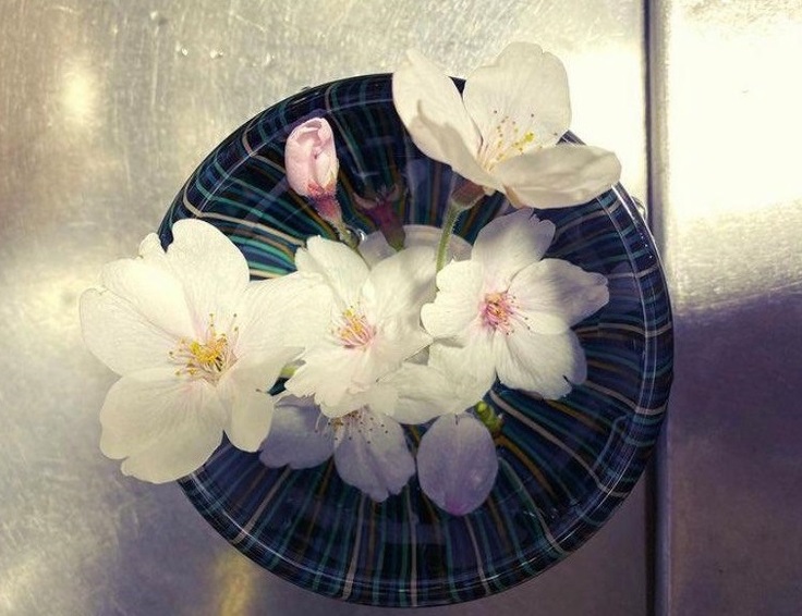 季節を感じる花瓶として使ってみたい。そうだ、桜の花を浮かべてみよう。風が舞い、散らした花弁を摘んできてhyakushikiに浮かべてみました。