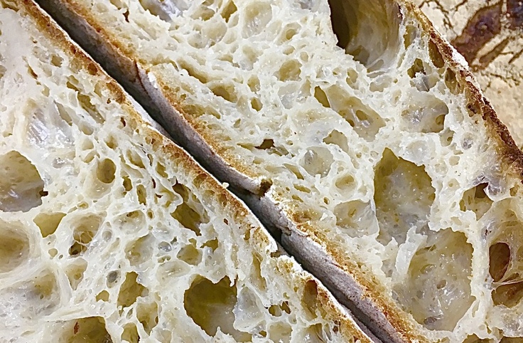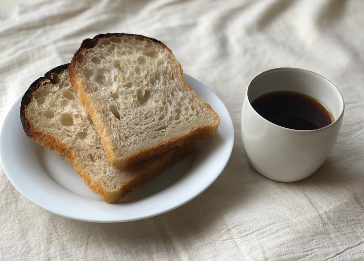 私たちがつくるパンは一般的なパンに比べて水分をたっぷりと入れて、さらに発酵時間も18〜22時間ほどかけてゆっくりと成長させていきます。低温長時間発酵と高加水を組み合わせることにより、みずみずしく口溶けの良い、小麦の甘みや香りを感じられるパンになります。