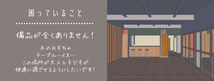 現在、空間自体は改修中ですが、備品が全く揃っていません!