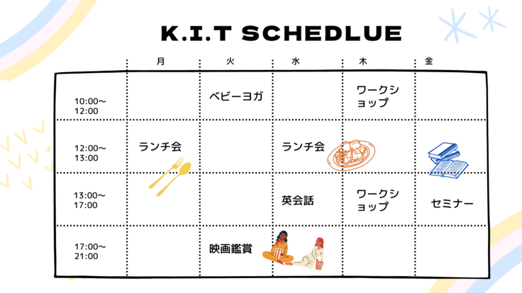 KIT=あなたなら「きっと」できる。この空間でそれぞれの人生の「キット」を組み立ててほしい。「keep in touch」(連絡を取り合う)=ここでの出会いを繋げたい、という想いからKITと名付けました。