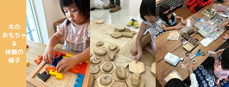 しかしながら、現在の住宅事情では木の見える家がとても少ないです。裸足で感じる木の温かみは、大人も子どもも安心できます。身体も心も気持ちがいい空間の中でぜひ過ごしていただきたいです。おもちゃなども木育・知育にこだわって厳選したものをご用意いたします。