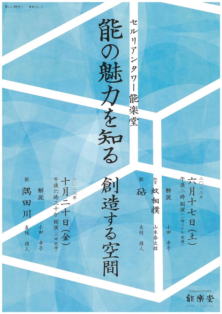6月17日(土)セルリアンタワー能楽堂「能の魅力を知るー創造する空間ー」が開催されます。