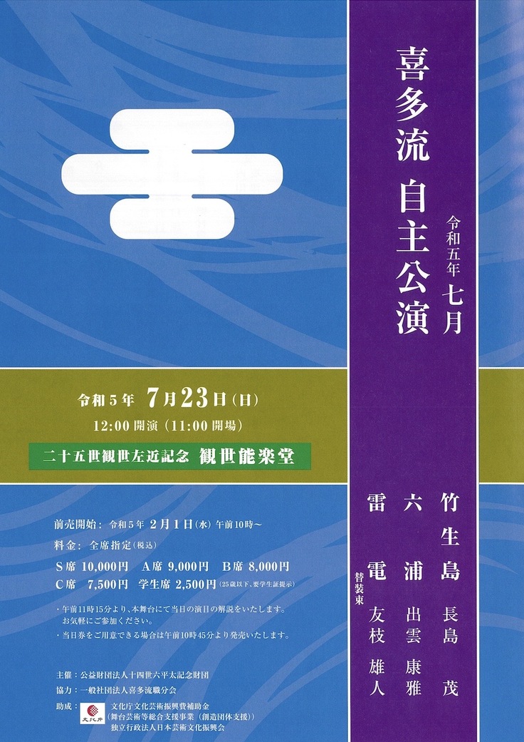 今週日曜日に「喜多流7月自主公演」を観世能楽堂にて開催します。銀座の涼しい能楽堂で