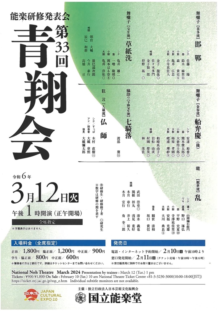 【前売り券情報】『第33回 青翔会』『第二十六回 仙台青葉能』