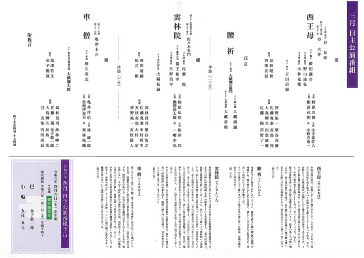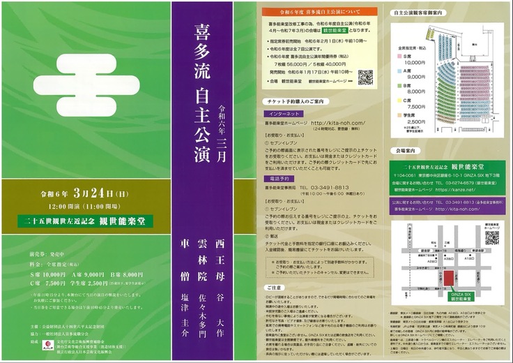 【公演情報】3月24日(日)『喜多流 3月自主公演』当日券もございます!