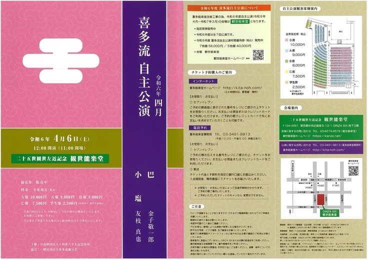 【公演情報】4月6日(土)喜多流4月自主公演 当日券もございます!