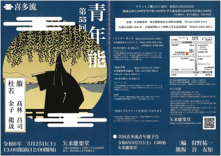 5月25日(土)「第55回 喜多流青年能」を矢来能楽堂にて開催いたします。当日券もございます。ぜひご来場ください!