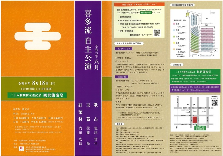 2024年8月18日(日)12時開演(11時開場) 観世能楽堂