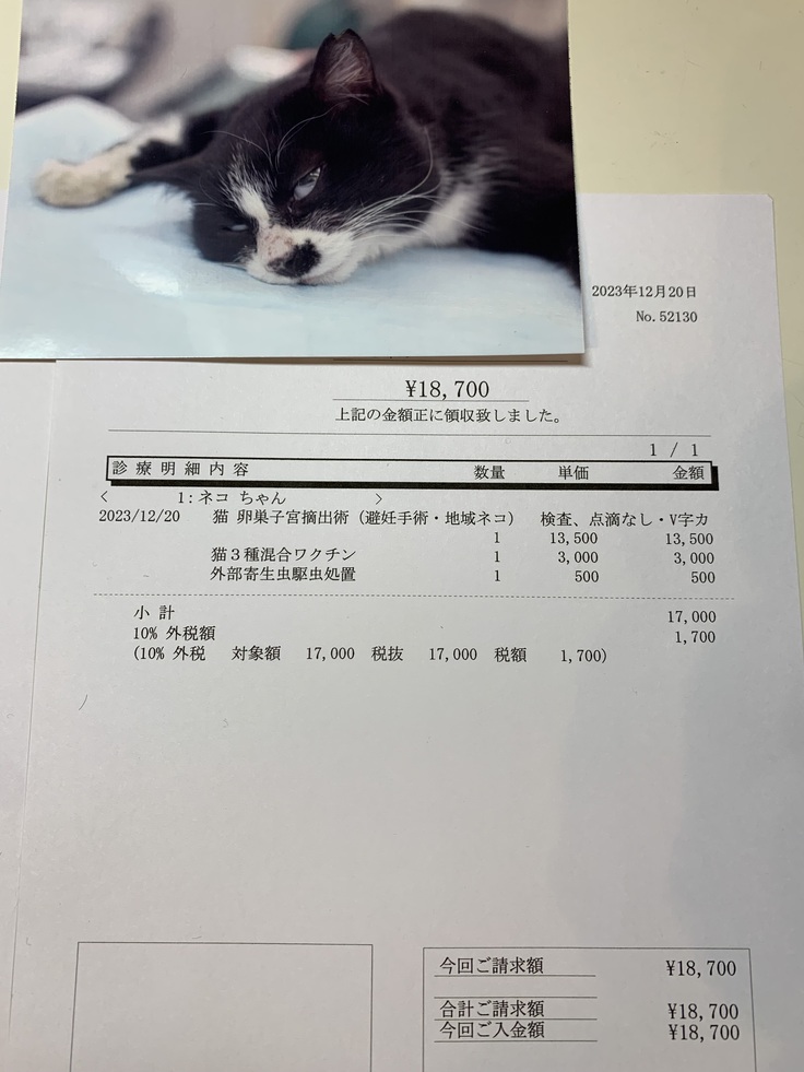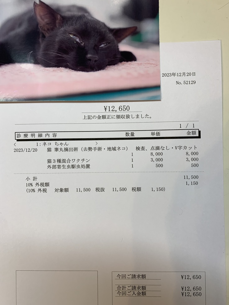 朝イチで動物病院に搬入し、夕方、お迎えに。