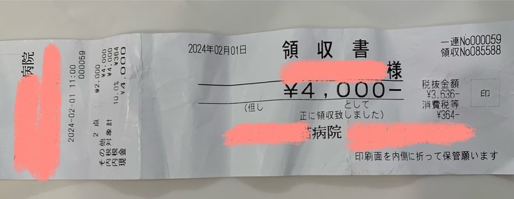今回、私の方では4,000円のみ医療費を負担させていただきました。