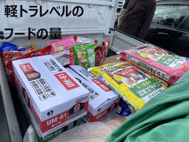 ボランティアさんが、シェルターで暮らす猫たちと、見守り猫たちのフードの買い出しをしてくれました。