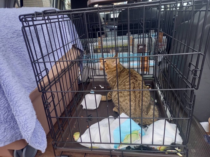 1匹は運良くケージで捕まりました、よしよし