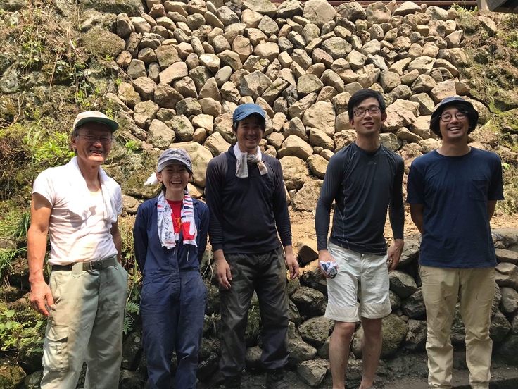 金子くんを中心に、別の現場で石積みを経験した知人たちもヘルプで参加してくれて、「石積み初心者」の私や手伝いに来てくれた人たち含めて延人数20名以上で4日間で石積みを終えました。