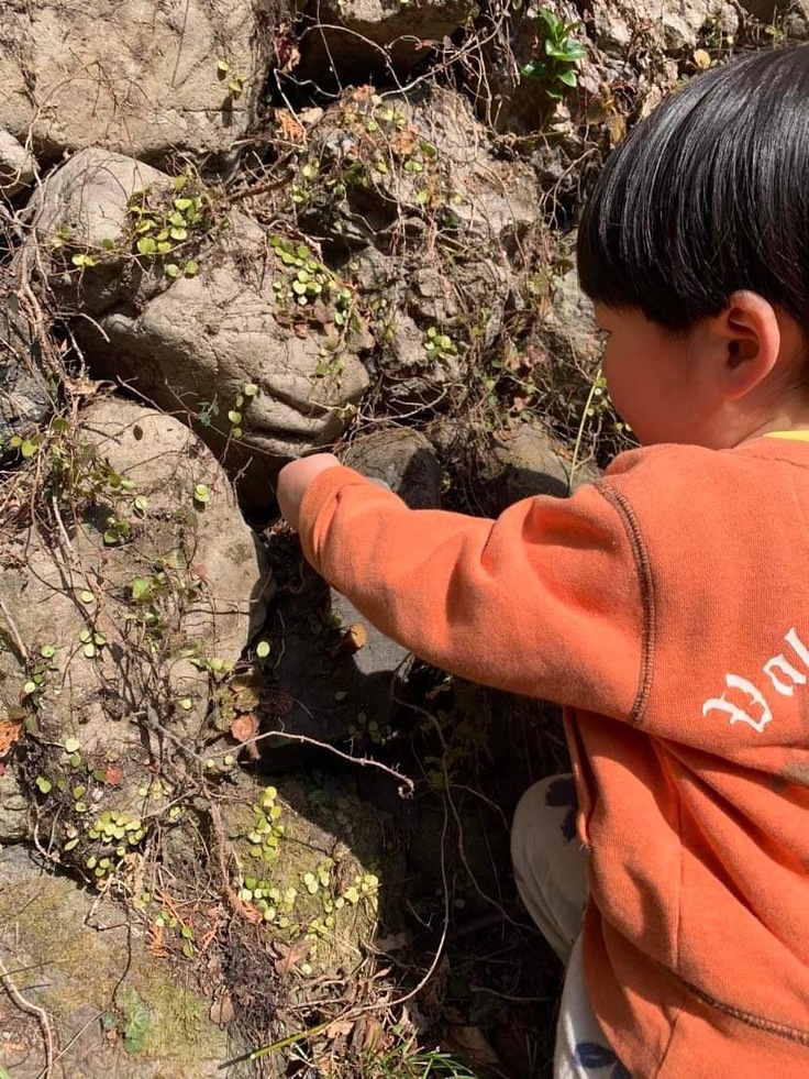 その様子を見ていた北山舎メンバーの2歳のお子さんも、小さな石を運んでくれたり、隙間にぐり石を詰めてくれるなど、お手伝いをしてくれました。