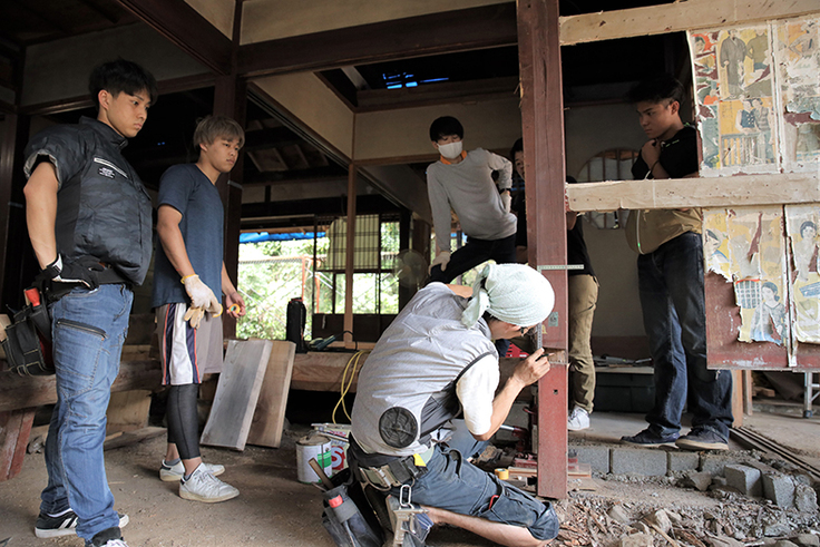 特に2021年度からモリスガ・ベースの現場は、代表が講師を務める京都建築専門学校の学生らが実習現場として関わってくれることになりました。