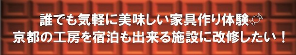 現在、アトリエでは誰もが気軽に家具作りに挑戦して頂けるようにワークショップを開催しています。嬉しいことに、連日国内外からのお客様がいらっしゃるのですが、場所が辺鄙なだけに交通機関が終わるのが早く、ゆっくりと作業に集中して頂くことが出来ません。アトリエに宿泊できるスペースを設け、心ゆくまで制作を楽しんで頂きたい!しかし、そのための改修費が不足しています。