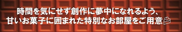 ワークショップ参加者の方が制作に夢中になって、うっかりバスをのがしてしまっても大丈夫!心行くまでご自身の思い描く”お菓子作り”をして、甘いお部屋でお休みください。