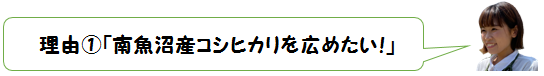 1つ目は、「南魚沼産コシヒカリのおいしさをとにかく広めたい」から。