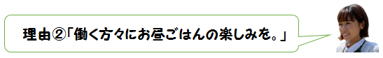 そして2つ目は、「会社やご自宅など、働いている全ての方々に、週に一度でも良いからいつもと違ったお昼ごはんの楽しみをお届けしたい」 という思いがあったからです。
