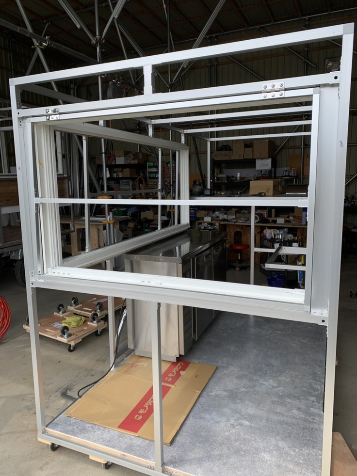 軽トラの後ろに乗せる部分を、アルミで枠から作っていきます。