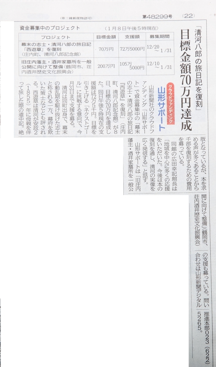 ☟1月9日付山形新聞(22面)
