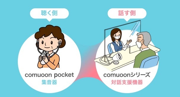 comuoon®(コミューン)は、話す側から聴こえの支援ができる全く新しいカタチの対話支援機器です。