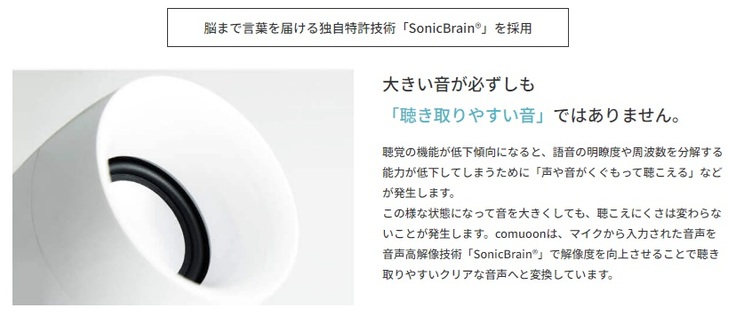聴こえに悩む人が自ら工夫するのではなく、話す側から聴こえの改善に歩み寄るという逆転の発想から生まれた対話支援機器、それがcomuoonです。