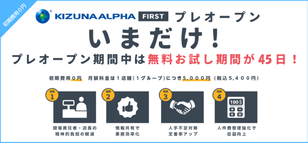※通常お試し期間は30日ですが、プレオープン期間中(2019年1月31日まで)は45日と設定しています。
