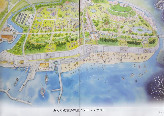 海岸沿いはすべて防災緑地とし、10mほどかさ上げして公園化する計画です。