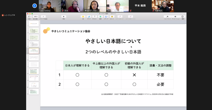 初回ということもあり、やさしい日本語への翻訳を担当する黒田さんより、ご挨拶や翻訳についての説明をしていただきました。