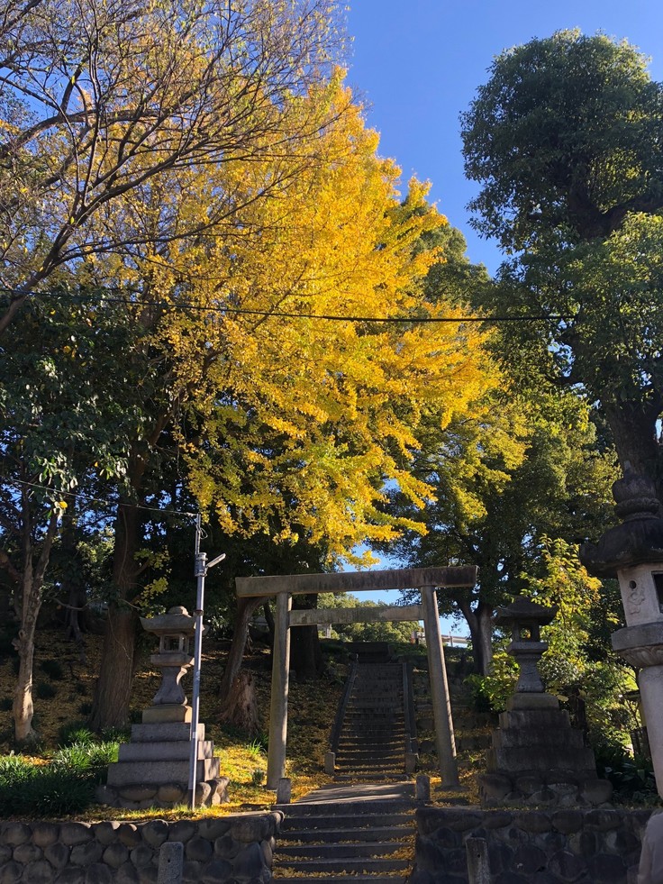 五所社地内には、緑が多く、晩秋にはイチョウの木が綺麗に色づきます。