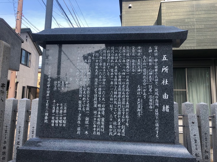 中小田井の氏神様の五所社は、八幡社・神明社・天神社・愛宕社・熊野社を祀っています。